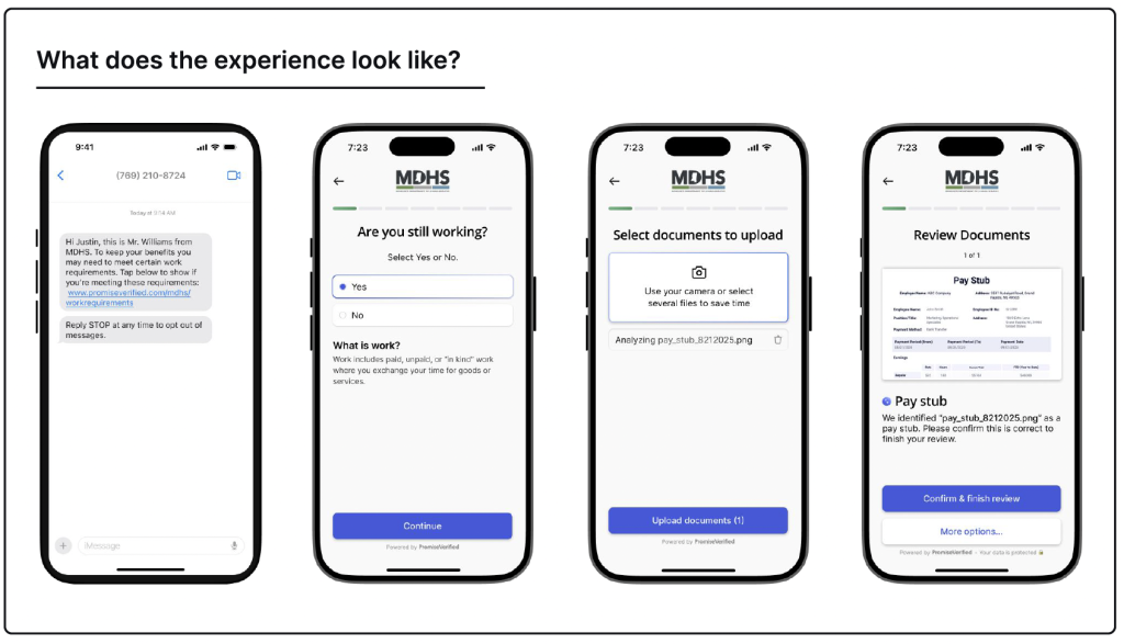 Through these messages, you will be guided to upload documents, which will be securely sent directly to their MDHS caseworker. Following a successful pilot in Harrison County and Pearl River County, these messages are now statewide.